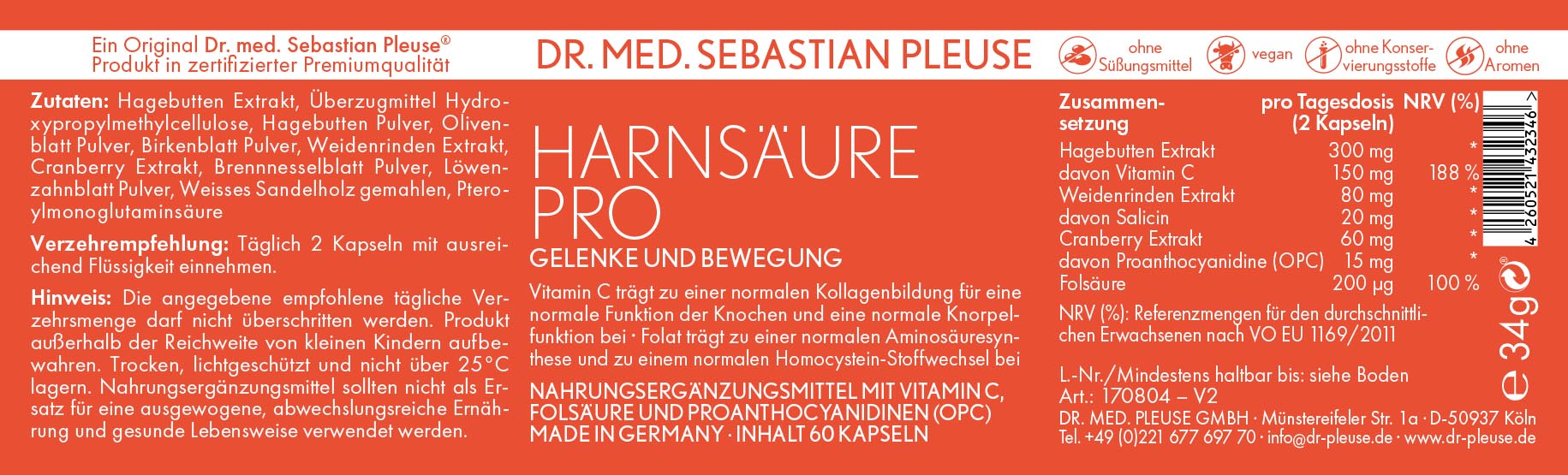 HARNSÄURE PRO wurde speziell mit Blick auf diese Herausforderungen entwickelt. Es basiert auf rein natürlichen Inhaltsstoffen und kann uns mit unterschiedlichen Wirkmechanismen umfassend unterstützen. Die hochwertige Kombination aus Sandelholz, Weidenrinde, OPC, Vitamin C und Folsäure kann dabei helfen, herausfordernde Situationen möglichst rasch wieder in den Griff zu bekommen. Auch die vorbeugende Einnahme ist möglich!