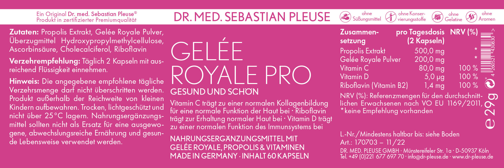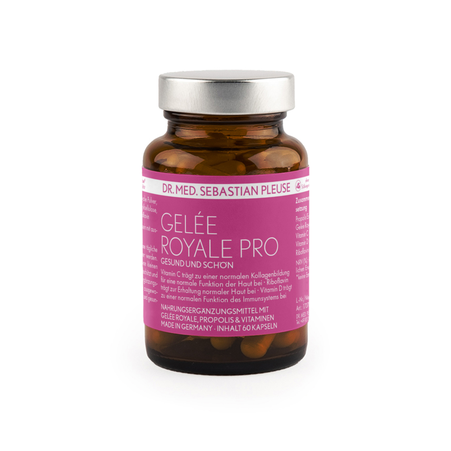 Mit Gelée Royale Pro von Dr. med. Sebastian Pleuse haben wir eine Nahrungsergänzung kreiert, die Ihre Haut begeistern wird und dabei voll auf die Kraft der Natur setzt. Das sagenumwobene Gelée Royale ist seit Jahrhunderten für seine Magie bekannt - und inzwischen hilft uns die Wissenschaft dabei, diese zu erklären!