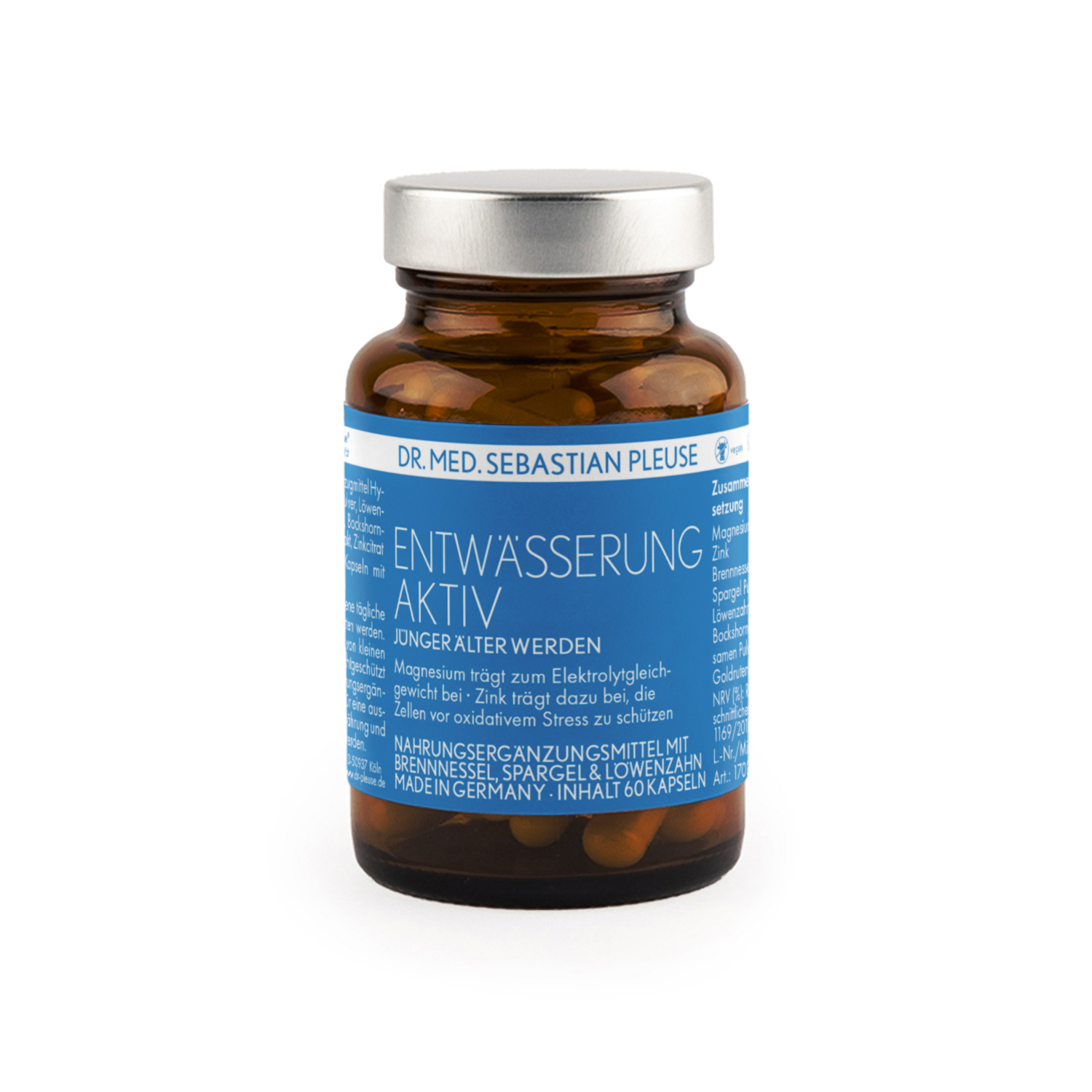 Entwässerung Aktiv von Dr. med. Sebastian Pleuse verbindet auf intelligente Weise traditionelles Wissen mit aktuellen Forschungsergebnissen. Die bewährte Kombination aus Brennnessel und Spargel erweitern wir um hochwirksamen Bockhornklee, wertvolles saponinhaltiges Goldrutenkraut und die noch nahezu unbekannte Löwenzahnwurzel, sie steckt voller Flavonoide und enthält von Natur aus das Elektrolyt Kalium. Das Doppelpack mit 120 Kapseln ist ausreichend für 60 Tage.