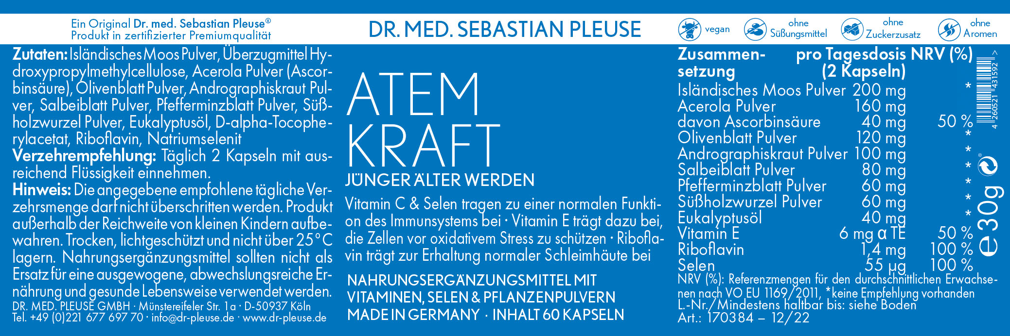 Weil eine ausgewogene Ernährung unserem Körper dabei hilft, sich selbst zu schützen und gegen Herausfordreungen zu wehren, enthält Atemkraft zusätzlich hochwertige natürliche Vitamine und Spurenelemente: