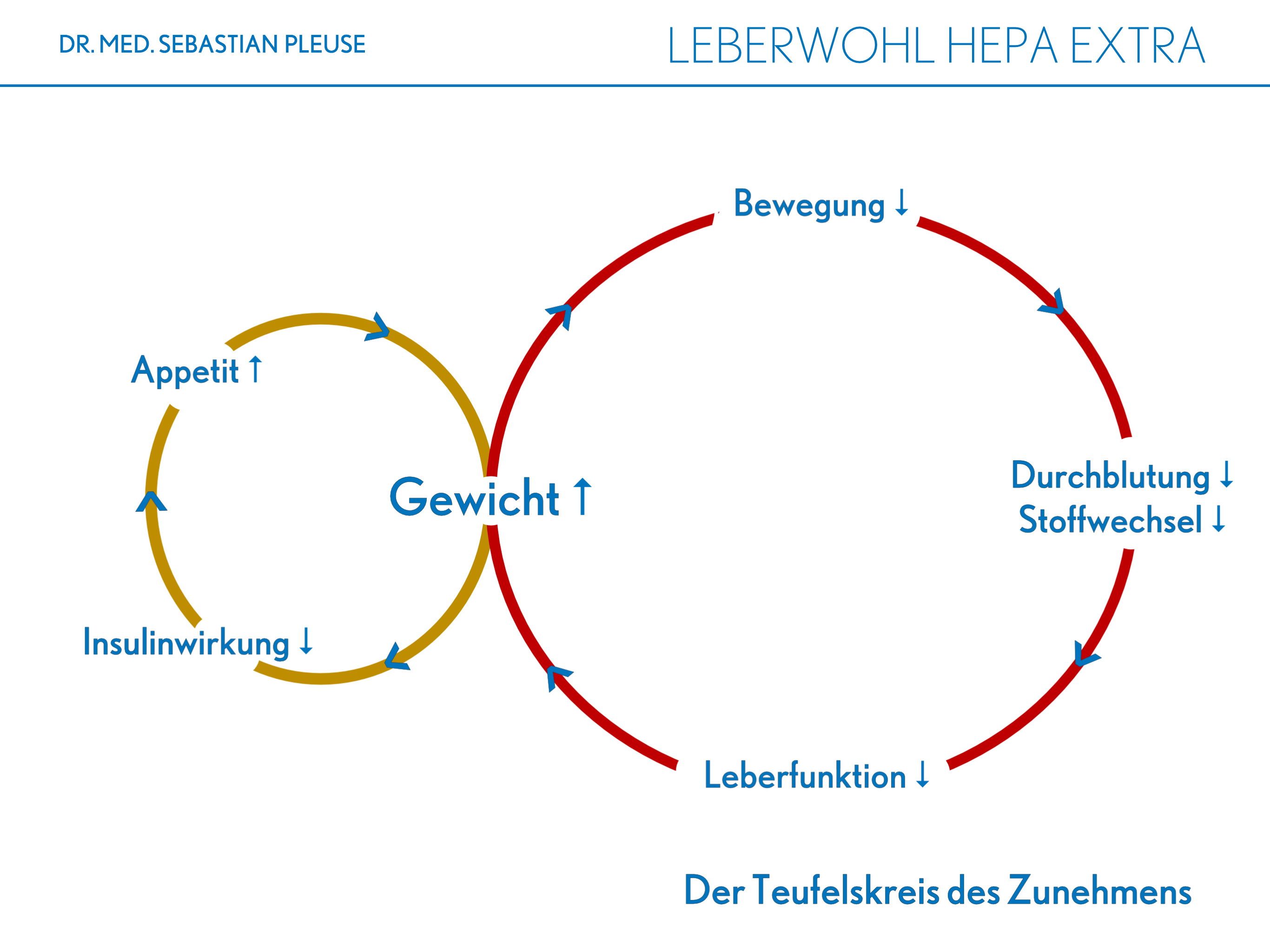 Eine unerwünschte und unkontrollierte Gewichtszunahme birgt viele Risiken für unser Herz-Kreislauf-System, unseren Hormonhaushalt und unseren Blutzuckerspiegel. Ziel muss es daher sein, den Teufelskreis aus Leberverfettung und erhöhtem Körpergewicht zu unterbrechen!