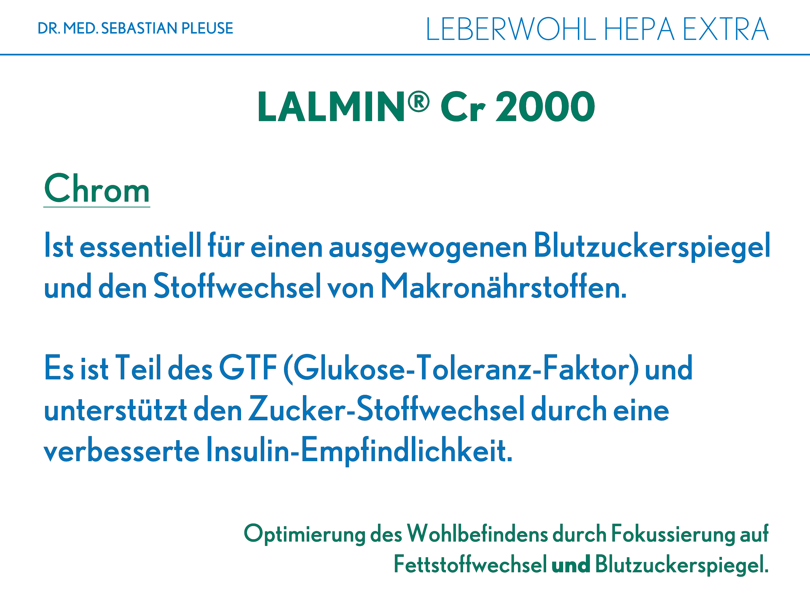 Als hocheffektiver Wirk-Komplex ist Lalmin® Cr2000 hinzugekommen. Lalmin® Cr2000 ist ein kanadischer Markenrohstoff, der den Körper optimal mit besonders bioverfügbarem Chrom versorgt.