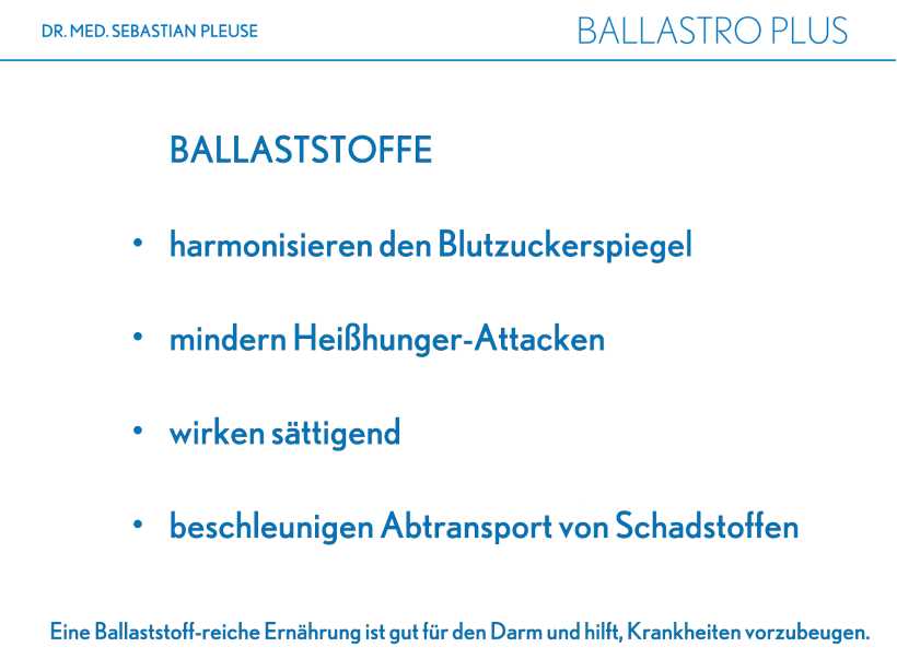 Zusätzlich versorgt Ballastro Plus Sie mit wichtigen Vitaminen und Spurenelementen für verschiedenste Aspekte Ihres Wohlbefindens.